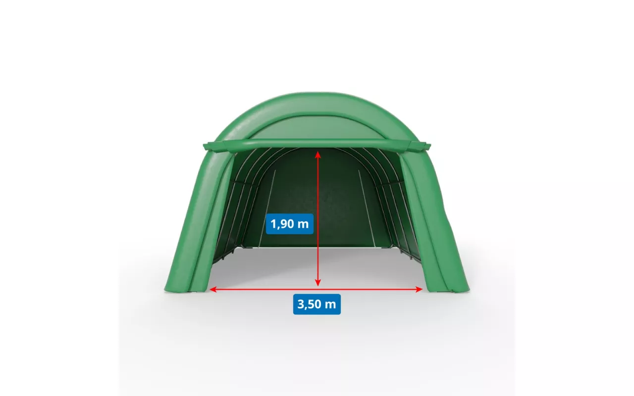 Plachtový garážový stan v zeleném provedení 3,66x6,1 m je všestranné krytí pro vozidla, zemědělské stroje i stavební techniku. Obloukový rám a plachta z PVC o gramáži 900 g/m² zajišťují vysokou odolnost a dlouhou životnost. Stan chrání před deštěm, sněhem, větrem i UV zářením a pomáhá udržet techniku v provozuschopném stavu. Rychlá montáž a snadné přemístění dělají z řešení praktickou volbu pro firmy i soukromníky. Požádejte o nabídku.