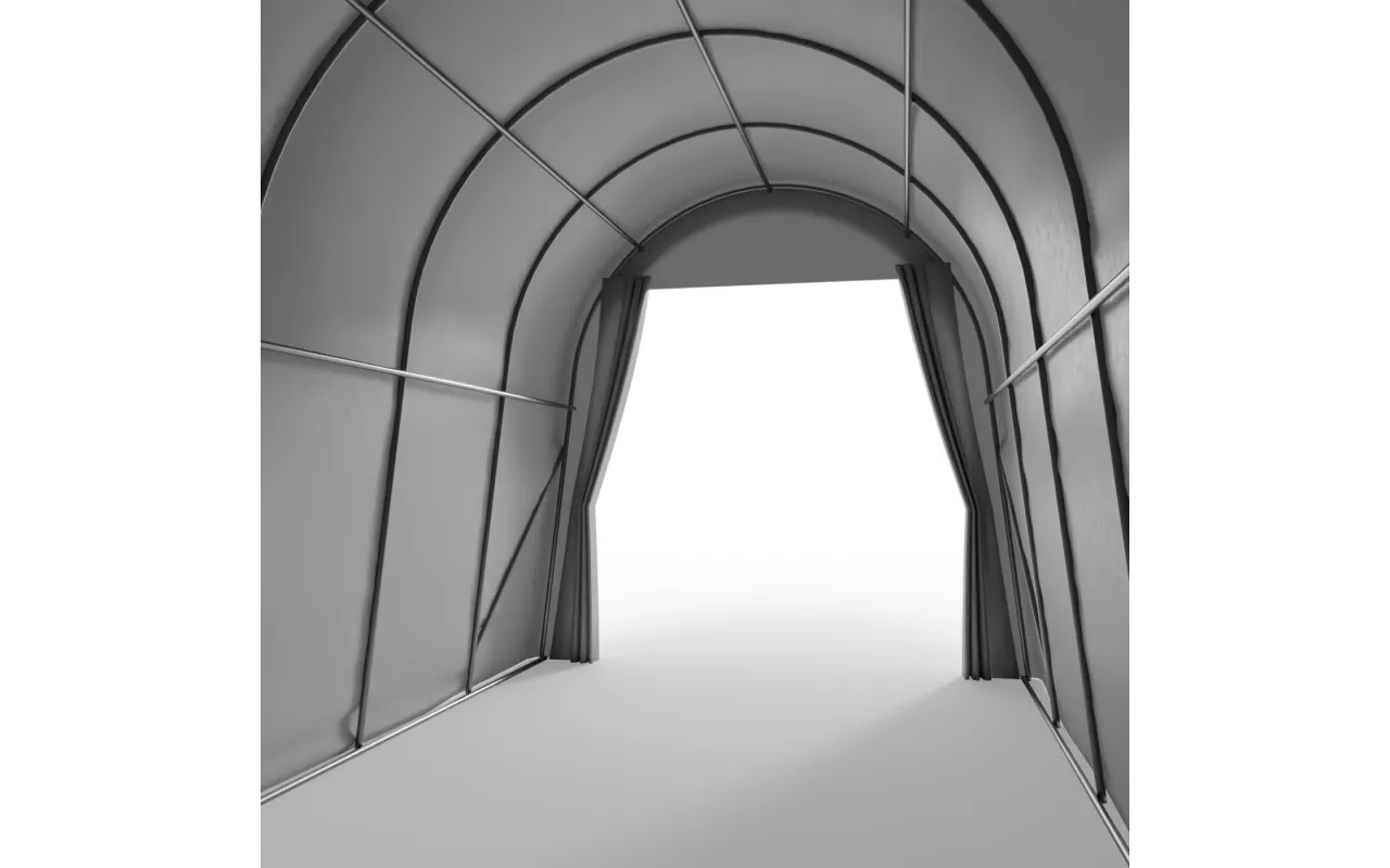 Střešní a boční napínací systém založený na ocelových lankách zaručuje stabilitu stanu, zabraňuje deformaci a účinně chrání plachtu před sněhem a náporem větru. Vnitřní napínací systém udržuje plachtu napnutou, což eliminuje tvorbu záhybů a vodních kaluží na povrchu a zvyšuje estetiku a profesionální vzhled stanu. Díky těmto řešením jsou garážové stany dokonale vhodné pro použití v náročných povětrnostních podmínkách a zaručují robustnost a spolehlivost.