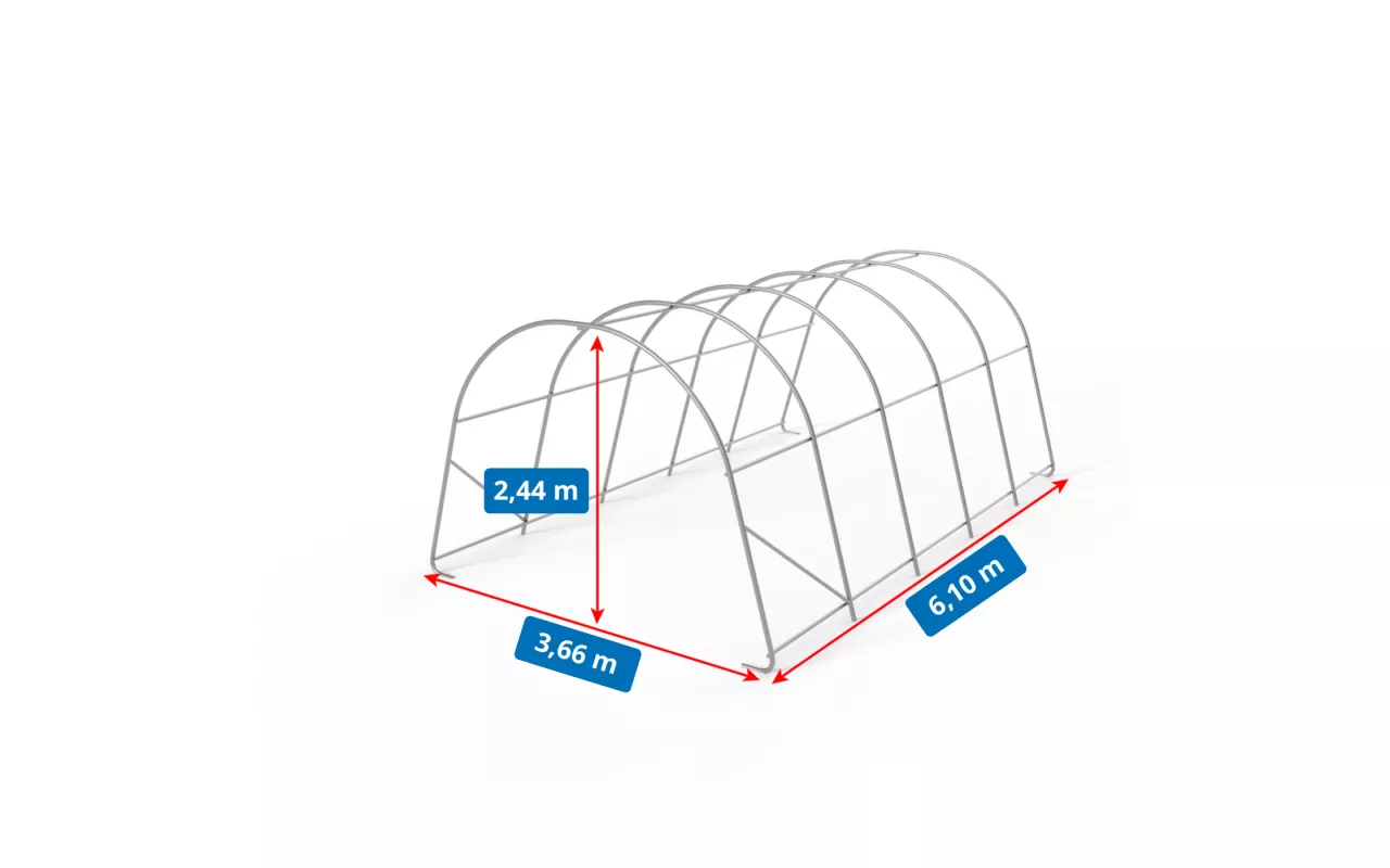 Plachtový garážový stan 3,66x6,1 m je univerzální a všestranné řešení. garážový stan poskytuje odolnou ochranu pro vozidla, zemědělské stroje i stavební techniku. Oblouková konstrukce a plachta z PVC o gramáži 900 g/m² spolehlivě chrání před deštěm, sněhem, větrem i UV zářením. Rychlá montáž a snadné přemístění z něj dělají flexibilní volbu pro firmy i soukromé uživatele.