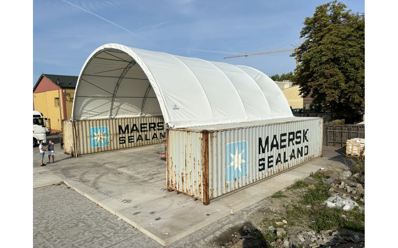 Kontejnerové zastřešení 12x12 m je všestranné a inovativní stanové zastřešení navržené pro ochranu a zabezpečení prostoru mezi kontejnery. Je ideální pro logistických firem, sklady i stavenišť – poskytuje spolehlivou ochranu před deštěm, sněhem i intenzivním slunečním zářením. Díky provedení z odolného PVC materiálu nabízí dlouhou životnost a vysokou odolnost při každodenním provozu. Modulární konstrukce umožňuje rychlou montáž na stávající kontejnery a snadné přizpůsobení různým požadavkům. Zajistíme i uzavření ze všech stran včetně vjezdová brána nebo vstupní dveře. Pro cenovou nabídku nás kontaktujte.
