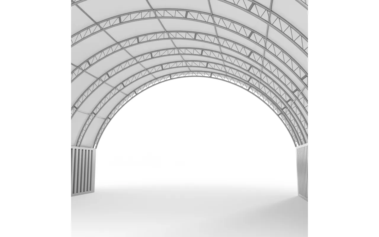 Konstrukce stanu Kontejnerové zastřešení zesílené 12x12 m PVC 750 g/m² se vyznačuje použitím nosných trubek a spojovacích prvků se zvětšeným průměrem, což se projevuje zvýšením pevnostních parametrů celého systému. Ocel je totiž základem naší konstrukce, proto jsme použili konstrukční ocel válcovanou za studena. Prvky skeletu jsou navíc perforované s vyloučením svarů, neboť použití této technologie vykazuje největší odolnost konstrukce vůči statickému a dynamickému zatížení a zabraňuje případným deformacím. Za účelem ochrany skeletu (stanové haly se šikmou střechou) jsme ocelové prvky pozinkovali. Tato metoda poskytuje komplexní ochranu proti korozi ve vnitřních i venkovních podmínkách. Ocelové trubky tak vykazují vysokou odolnost vůči procesům koroze. Střešní a boční napínací systém se skládá z ocelových lan. Výsledkem je stabilní konstrukce, která se nedeformuje a zůstává kompaktní po celou dobu své životnosti. Zároveň chrání plachtu před náporem sněhu a větru. Vnitřní napínací systém je u Kontejnerové zastřešení zesílené 12x12 m PVC 750 g/m² klíčový, protože udržuje materiál v napětí, což zabraňuje vzniku záhybů a vodních kaluží na povrchu plachty. Díky tomu je hala lépe chráněna před nepříznivými povětrnostními podmínkami, jako je silný vítr nebo déšť. Tento systém také přispívá k estetickému vzhledu stánku a dodává mu bezvadný a profesionální vzhled.