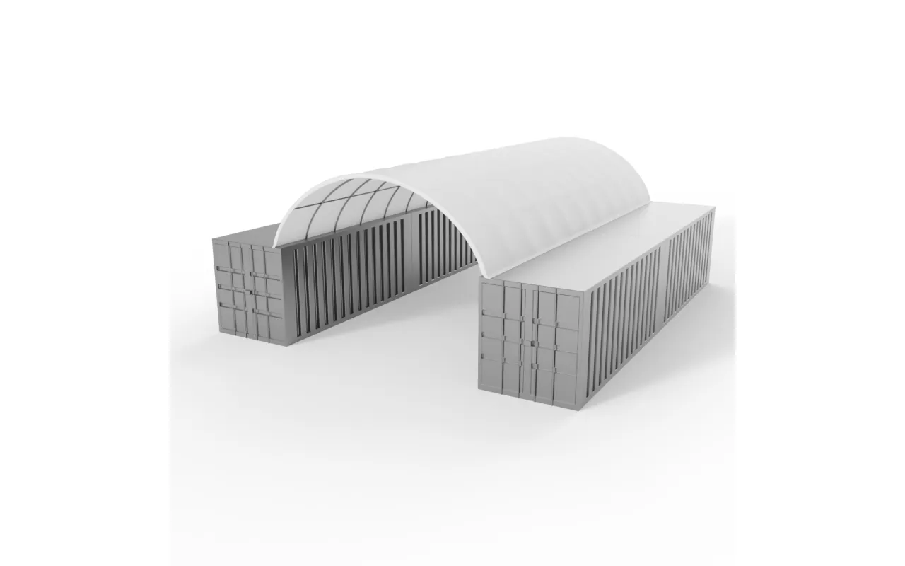 Kontejnerové zastřešení 6×12 m je efektivní ochrana prostoru mezi kontejnery pro logistických firem, sklady i stavenišť. Chrání materiál i manipulaci před deštěm, sněhem a intenzivním sluncem. Opláštění z odolného PVC materiálu s plošnou hmotností 900 g/m² je určeno pro dlouhou životnost a náročný provoz. Nabízíme individuální úpravy: uzavření ze všech stran a doplnění o vjezdová brána nebo vstupní dveře. Díky snadné montáži lze konstrukci rychle přemístit podle aktuálních potřeb. Kontaktujte nás pro technické parametry a nabídku.