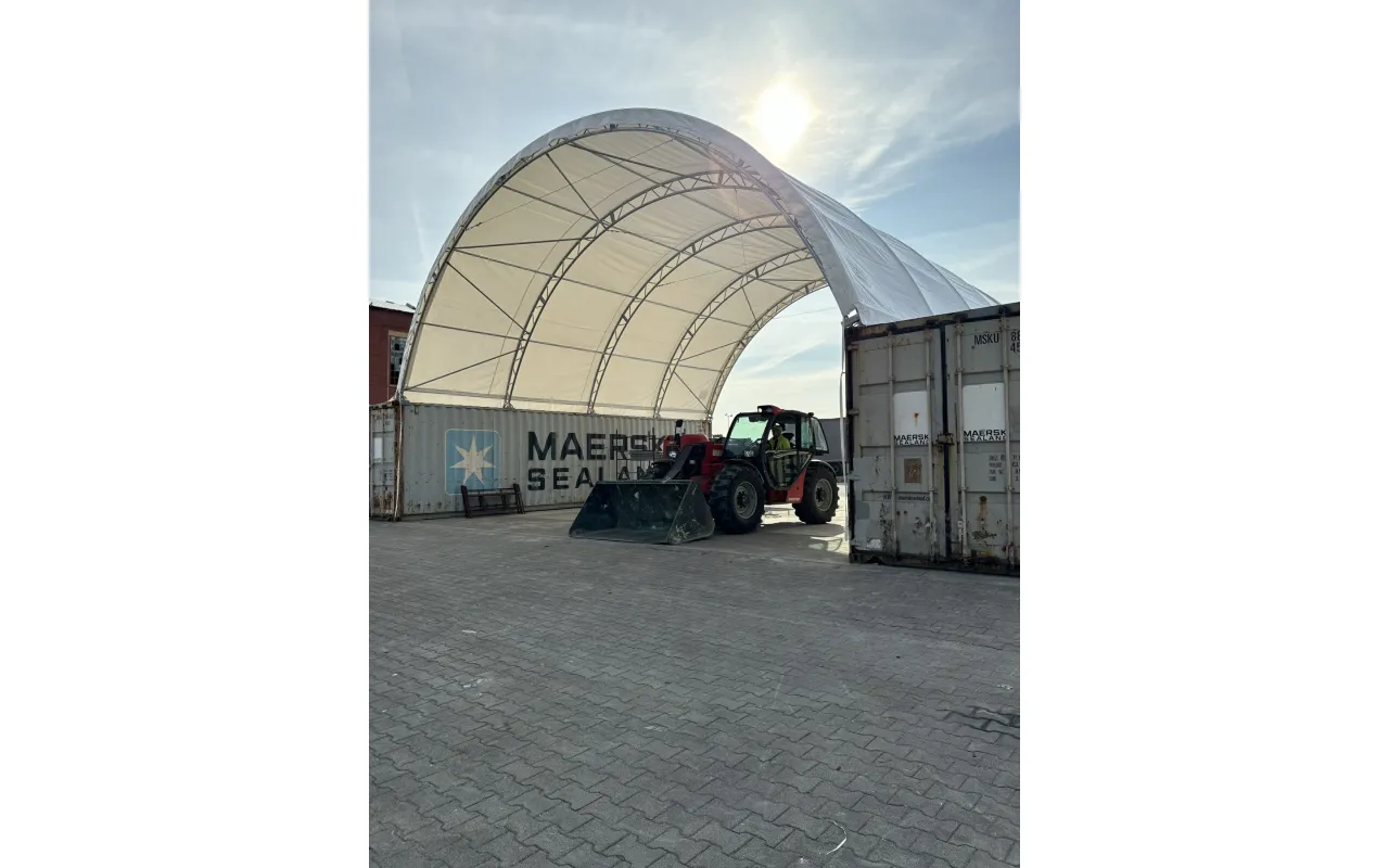 Kontejnerové zastřešení zesílené 12×24 m je navrženo pro náročné provozy, kde je klíčová odolnost a stabilní ochrana prostoru mezi kontejnery. Hodí se pro logistických firem, sklady i stavenišť – spolehlivě chrání před deštěm, sněhem a sluncem. Konstrukce je vyrobená z odolného PVC materiálu o plošné hmotnosti 900 g/m², což prodlužuje životnost při intenzivním používání. Lze doplnit o uzavření ze všech stran, vjezdová brána nebo vstupní dveře. Rychlá montáž umožňuje snadné přemístění. Kontaktujte nás pro kalkulaci.