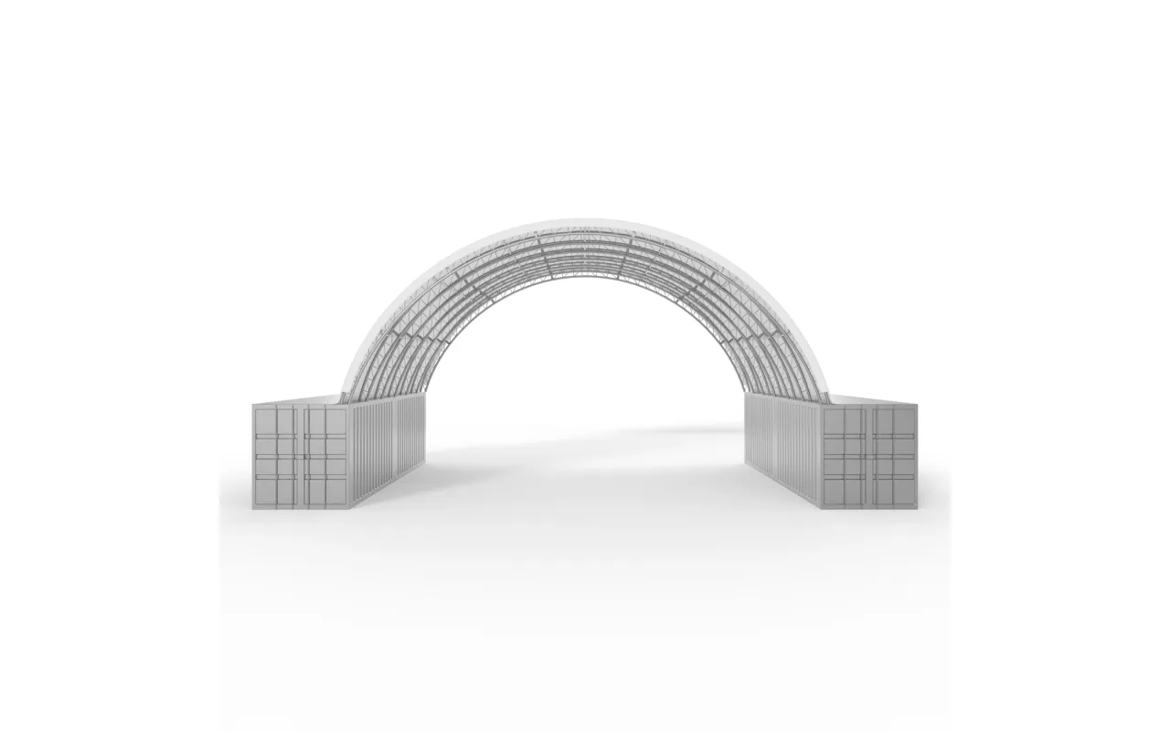 Konstrukce stanu Kontejnerové zastřešení zesílené 12x24 m PVC 900 g/m² se vyznačuje použitím nosných trubek a spojovacích prvků se zvětšeným průměrem, což se projevuje zvýšením pevnostních parametrů celého systému. Ocel je totiž základem naší konstrukce, proto jsme použili konstrukční ocel válcovanou za studena. Prvky skeletu jsou navíc perforované s vyloučením svarů, neboť použití této technologie vykazuje největší odolnost konstrukce vůči statickému a dynamickému zatížení a zabraňuje případným deformacím. Za účelem ochrany skeletu (stanové haly se šikmou střechou) jsme ocelové prvky pozinkovali. Tato metoda poskytuje komplexní ochranu proti korozi ve vnitřních i venkovních podmínkách. Ocelové trubky tak vykazují vysokou odolnost vůči procesům koroze. Střešní a boční napínací systém se skládá z ocelových lan. Výsledkem je stabilní konstrukce, která se nedeformuje a zůstává kompaktní po celou dobu své životnosti. Zároveň chrání plachtu před náporem sněhu a větru. Vnitřní napínací systém je u Kontejnerové zastřešení zesílené 12x24 m PVC 900 g/m² klíčový, protože udržuje materiál v napětí, což zabraňuje vzniku záhybů a vodních kaluží na povrchu plachty. Díky tomu je hala lépe chráněna před nepříznivými povětrnostními podmínkami, jako je silný vítr nebo déšť. Tento systém také přispívá k estetickému vzhledu stánku a dodává mu bezvadný a profesionální vzhled.