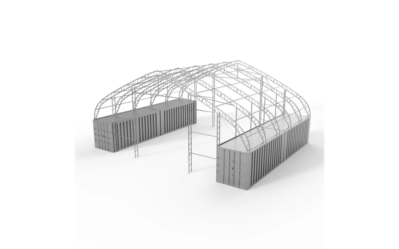 Kontejnerové zastřešení XL 15,25x12 m se stěnami PVC 900 g/m²