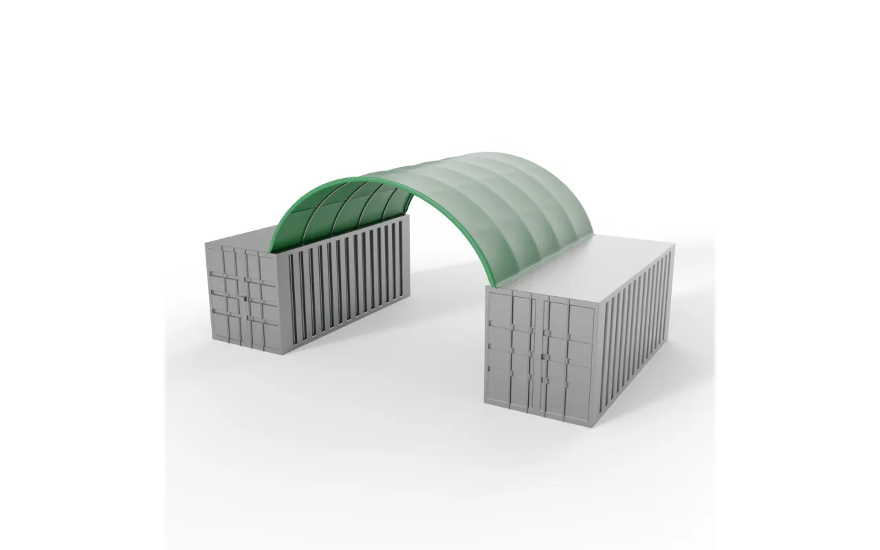 Kontejnerové zastřešení v zeleném provedení 6x6 m je univerzální a inovativní stanové zastřešení pro ochranu prostoru mezi kontejnery. Pro logistických firem, sklady i stavenišť poskytuje spolehlivou ochranu před deštěm, sněhem i intenzivním sluncem. Varianta z odolného PVC materiálu s gramáží 900 g/m² je určena pro náročnější provoz a dlouhodobé použití. Zajistíme individuální uzavření a volbu vjezdová brána nebo vstupní dveře.