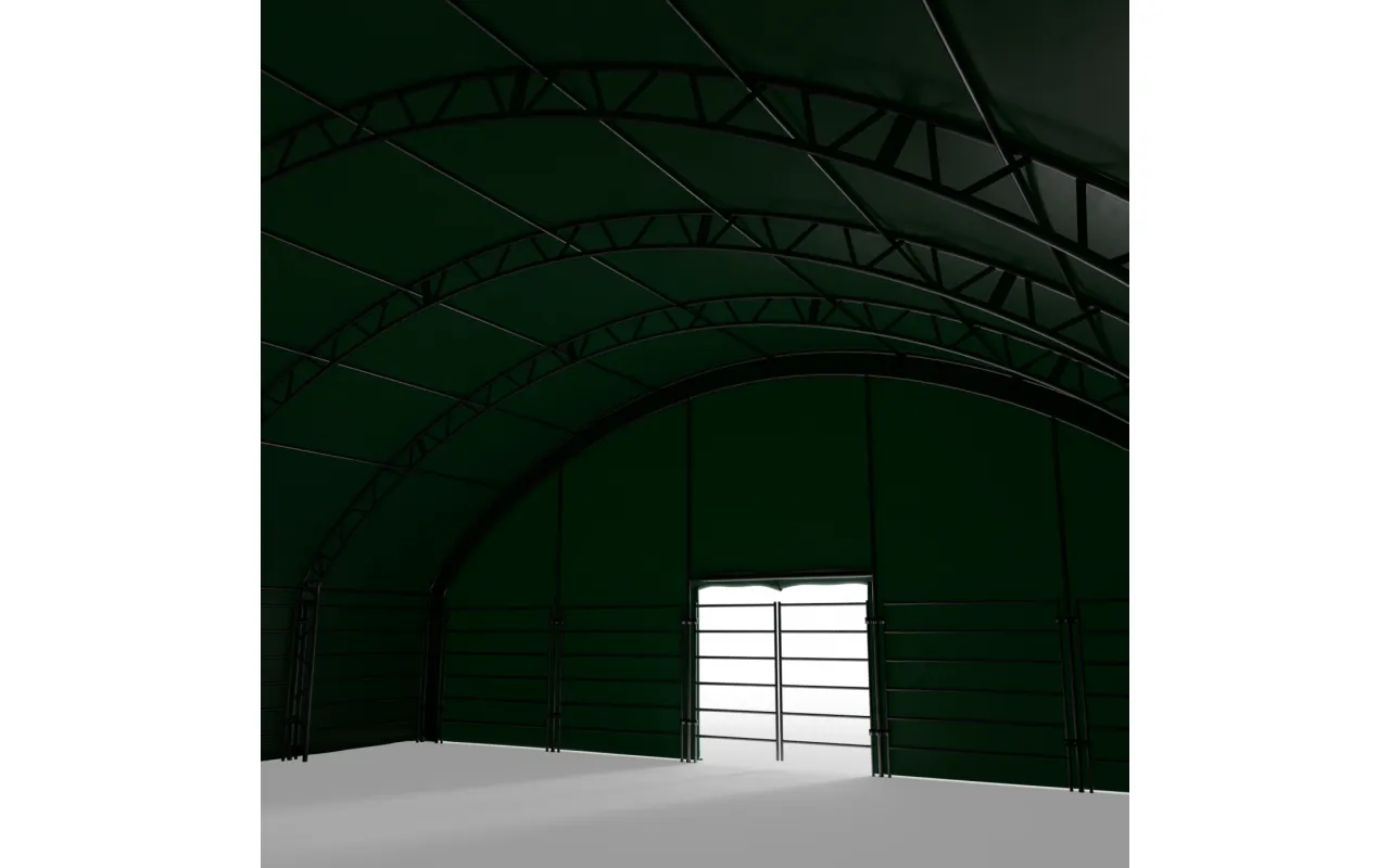Přední stěna pro výběh pro zvířata 12x12m PVC 750g/m² je hotový modul z PVC plachty, ktorý uzatvára vstup do ohrady a obmedzuje vplyv vetra, zrážok a chladu na priestor, v ktorom sa zvieratá zdržiavajú. Čelná stena montovaná na existujúcom ráme konštrukcie Gazelt, bez dodatočných nosných prvkov, predstavuje prirodzené doplnenie ohrady – nejde o samostatnú halu, ale o presne prispôsobený komponent systému. Vďaka Přední stěna pro výběh pro zvířata 12x12m PVC 750g/m² zostáva vnútorný priestor suchší, lepšie chránený pred prievanom a jednoduchší na udržiavanie čistoty, čo sa premieta do vyššieho komfortu koní, hovädzieho dobytka, oviec, kôz, alpak a lám, a to tak v poľnohospodárskych hospodárstvach, ako aj v agroturistických zariadeniach či sezónnych chovateľských stanovištiach.