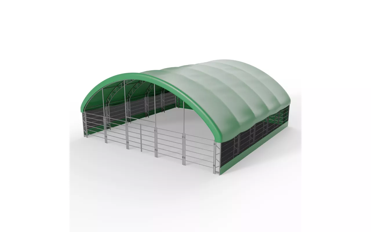 Přístřešek pro zvířata 12x12 m je stanové řešení pro zajištění stabilních chovatelských podmínek a ochrany zvířat. Dvojitá příhradová konstrukce zvyšuje tuhost a odolnost, takže je vhodná pro zemědělské provozy, farmy i soukromé pozemky. Plachta z PVC o gramáži 750 g/m² chrání před deštěm, větrem i intenzivním sluncem. Žárově pozinkovaná ocel zajišťuje dlouhodobý provoz bez zbytečné údržby. Konstrukci snadno smontujete i demontujete a rychle přizpůsobíte pro skot, ovce, kozy, koně, alpaky i drůbež. Kontaktujte nás pro kalkulaci.
