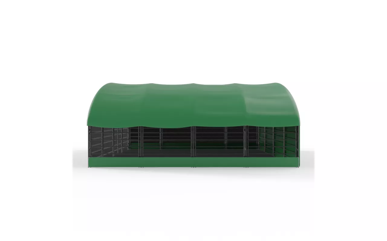 Přístřešek pro zvířata 10x10 m je odolný stanový přístřešek pro stabilní podmínky a bezpečí chovu. Hodí se pro zemědělské provozy, chovatelská centra i soukromé areály. Plachta PVC o gramáži 900 g/m² a žárově zinkované ocelové prvky dobře odolávají dešti, větru i silnému slunci. Konstrukce je rychlá na montáž i demontáž a snadno se přizpůsobí pro skot, ovce, kozy, koně, alpaky i drůbež. chovatelské stany poskytují kryt i prostor pro výběh, pastvu a odpočinek.