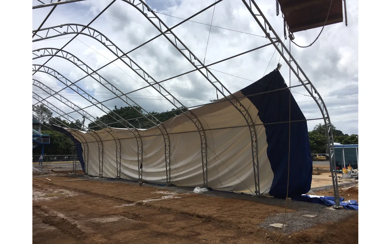 Konstrukce stanu Stanová hala se sedlovou střechou 12,2x18,3 m PVC 750 g/m² se vyznačuje použitím nosných trubek a spojek se zvětšeným průměrem, což přispívá ke zvýšení pevnostních parametrů celého systému. Srdcem naší konstrukce je ocel, proto jsme použili za studena válcovanou konstrukční ocel. Kromě toho jsou prvky rámu perforovány, čímž se eliminují svary, neboť tato technologie zajišťuje nejvyšší odolnost konstrukce vůči statickému a dynamickému zatížení a zabraňuje potenciálním deformacím. Pro ochranu rámu (Stanové haly se sedlovou střechou) jsme ocelové komponenty podrobili procesu galvanického pozinkování. Tato metoda poskytuje komplexní ochranu proti korozi za vnitřních i vnějších podmínek. Díky tomu vykazují ocelové trubky vysokou odolnost vůči korozi. Střešní a boční napínací systém se skládá z ocelových lan, což zajišťuje stabilitu konstrukce, která se nedeformuje a zůstává pevná po celou dobu používání. Tím se také chrání plachta před tlakem sněhu a větru. Vnitřní napínací systém je u Stanová hala se sedlovou střechou 12,2x18,3 m PVC 750 g/m² klíčový, protože udržuje materiál napnutý, čímž zabraňuje tvorbě záhybů a hromadění vody na povrchu plachty. Díky tomu je hala lépe chráněna před nepříznivými povětrnostními podmínkami, jako je silný vítr či déšť. Tento systém rovněž přispívá k estetice stanu a zajišťuje mu bezchybný a profesionální vzhled.