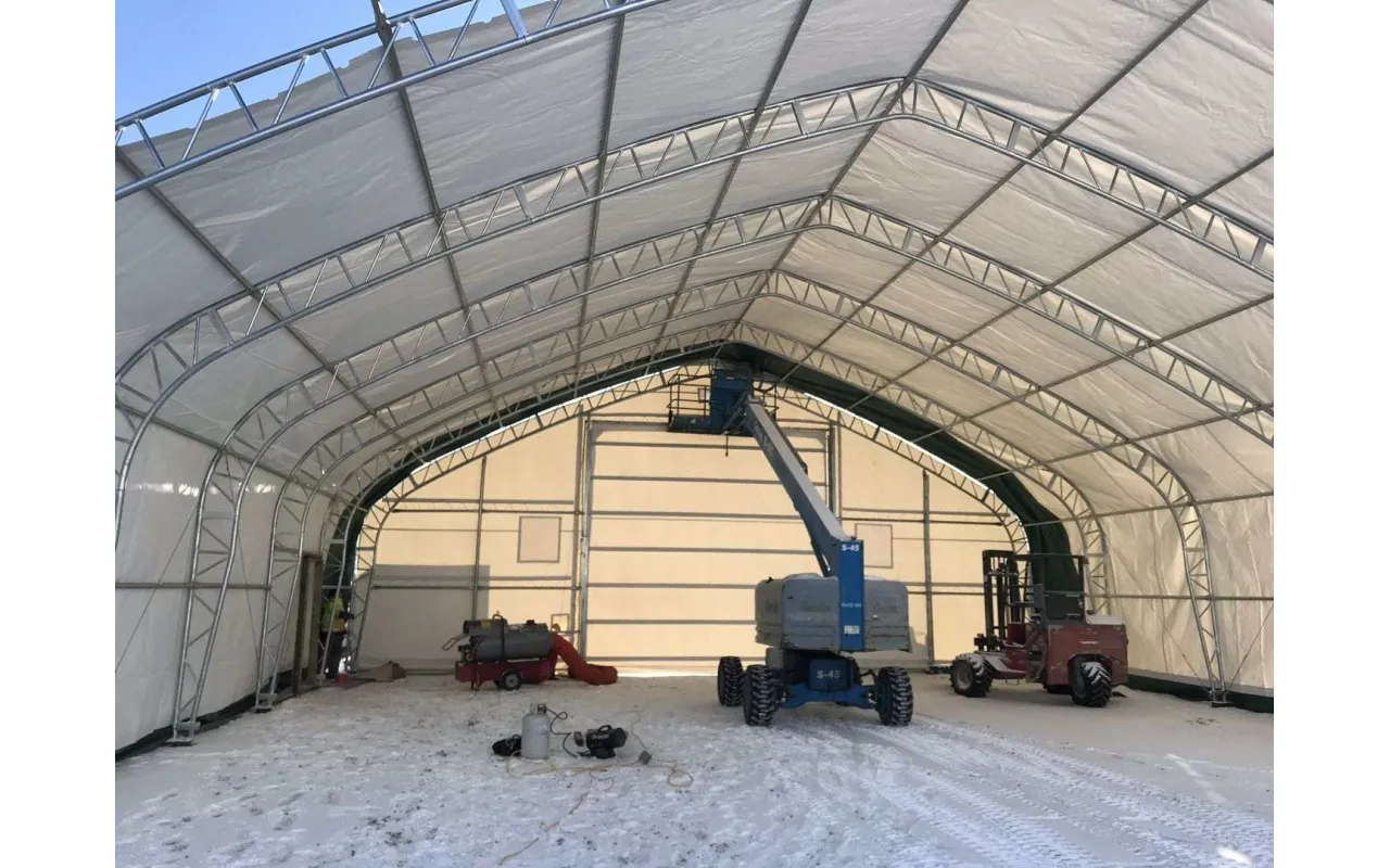 Stěnová konstrukce haly se sedlovou střechou se svislé a vysoké stěny umožní maximálně využít prostor podél stěn. stanová hala se sedlovou střechou 15,25x24,4 m je univerzální řešení pro průmyslové odvětví, zemědělství i sklady. strmá střešní konstrukce z PVC o gramáži 900 g/m² zajišťuje správné sklouzávání sněhu i deště a pomáhá chránit objekt před přetížením extrémními povětrnostními podmínkami. Díky rychlé montáži se snadno přizpůsobí provozu. stanová hala se šikmou střechou 15,25x24,4 m výborně funguje jako skladovací stan pro dlouhodobé a předvídatelné používání.