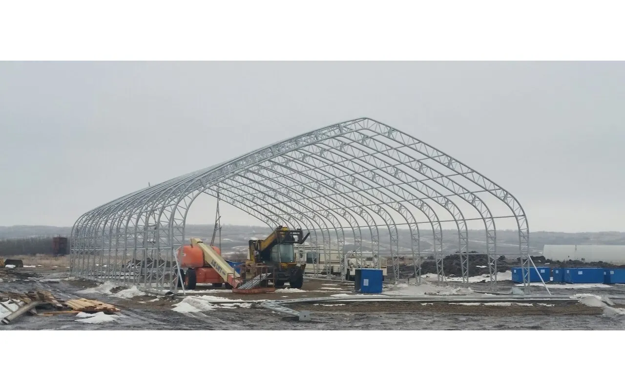 Konstrukce haly se sedlovou střechou se díky svislé a vysoké stěny dobře hodí pro skladování i podél stěn. Varianta 18,3x30,5 m je praktická pro průmyslové odvětví, zemědělství i logistiku. strmá střešní konstrukce s krytem PVC 750 g/m² podporuje sklouzávání sněhu a vody a snižuje riziko přetížením extrémními povětrnostními podmínkami. Rychlá montáž umožňuje rychlou změnu kapacit bez dlouhých odstávek. Ideální jako skladovací stan – vyžádejte si cenovou nabídku.
