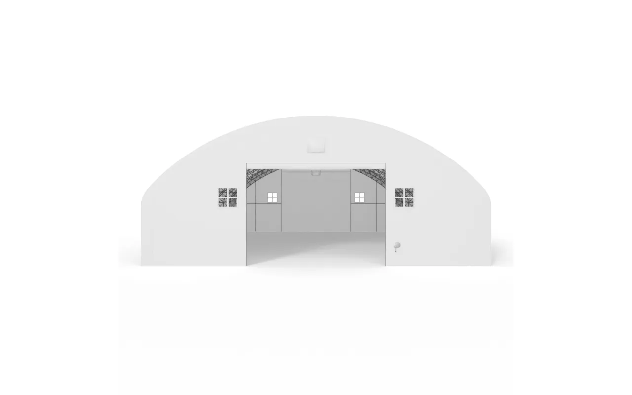 Plachtová hala se svislými bočními stěnami 15,25x30,5 m PVC 900 g/m² využívá ocelový rám v uspořádání dvoubodové příhradové konstrukce, který zvyšuje tuhost celku a usnadňuje bezpečný provoz v proměnlivých povětrnostních podmínkách. Plášť z PVC plachty dostupný ve variantě 750 g/m² (standardní) nebo 900 g/m² (zesílené) zajišťuje odolnost vůči dešti, sněhu, větru i UV záření. Hala je vybavena mechanickou bránou ovládanou ručně, bez automatizace, což zjednodušuje používání a snižuje riziko poruch. Rozměr brány (šířka × výška): 6,1 x 4,5 m – parametr umožňuje přizpůsobit vjezd strojům a vozidlům používaným v provozu.