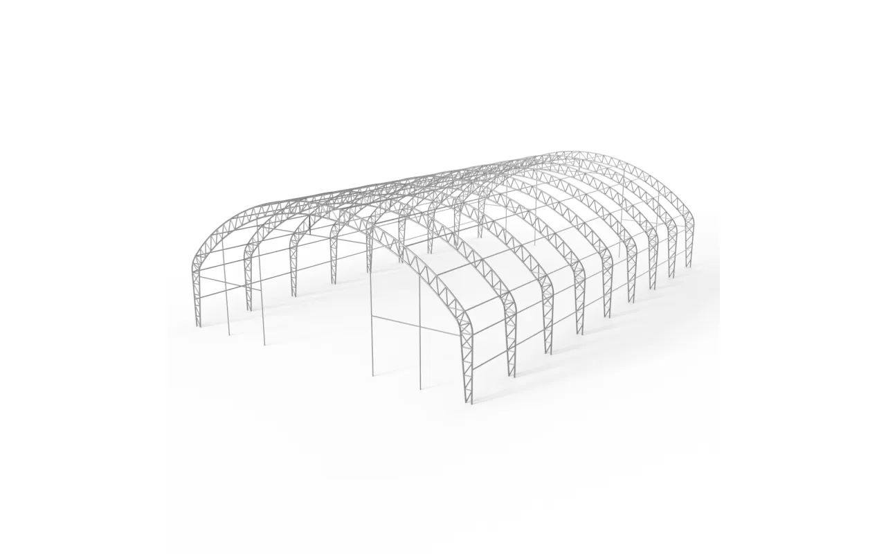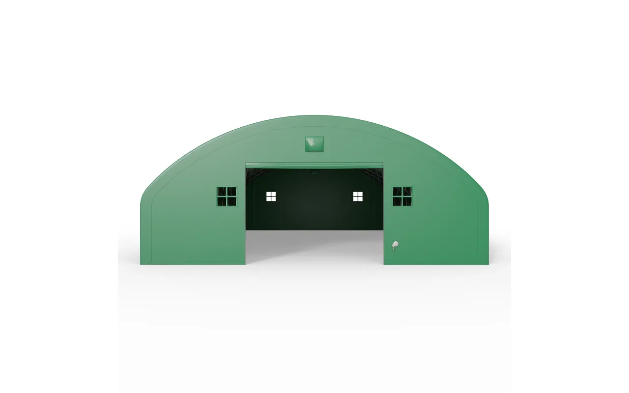 Zelená varianta s plachtovinou PVC 900 g/m² je určena pro ty, kteří požadují maximum z hlediska odolnosti a přehledný pracovní prostor. Ocelový rám a svislé boční stěny vytvářejí stabilní objem, který umožní plně využít kubaturu. Hala se hodí jako sklad strojů, zemědělských komodit i provozní zázemí – bez diktování organizace práce. Konzultujte výběr s týmem Gazelt.