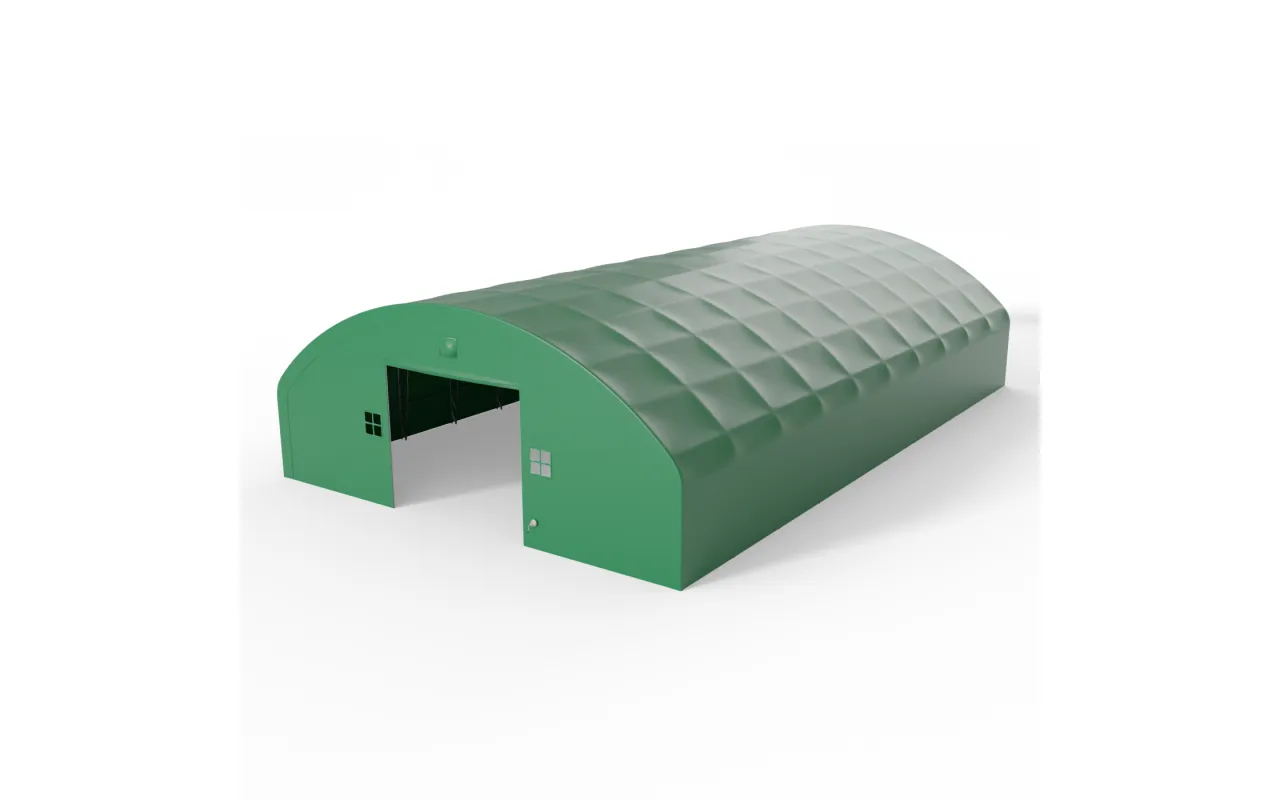 Plachtová hala se svislými bočními stěnami 21,5x30,05 m PVC 750 g/m² v zeleném provedení je funkční pracovní objekt určený pro skladování, uskladnění strojů a zajištění provozních činností. Kombinace obloukové geometrie střechy se svislými bočními stěnami umožňuje naplno využít šířku konstrukce bez vzniku nevyužitých zón u boků. Díky pravidelnému tvaru interiéru je snazší rozmístit regály, vybavení i pracovní stanoviště a prostor funguje jako klasický sklad. Řešení pro zemědělství, logistiku i průmysl – všude tam, kde má hala reálně podporovat každodenní práci.