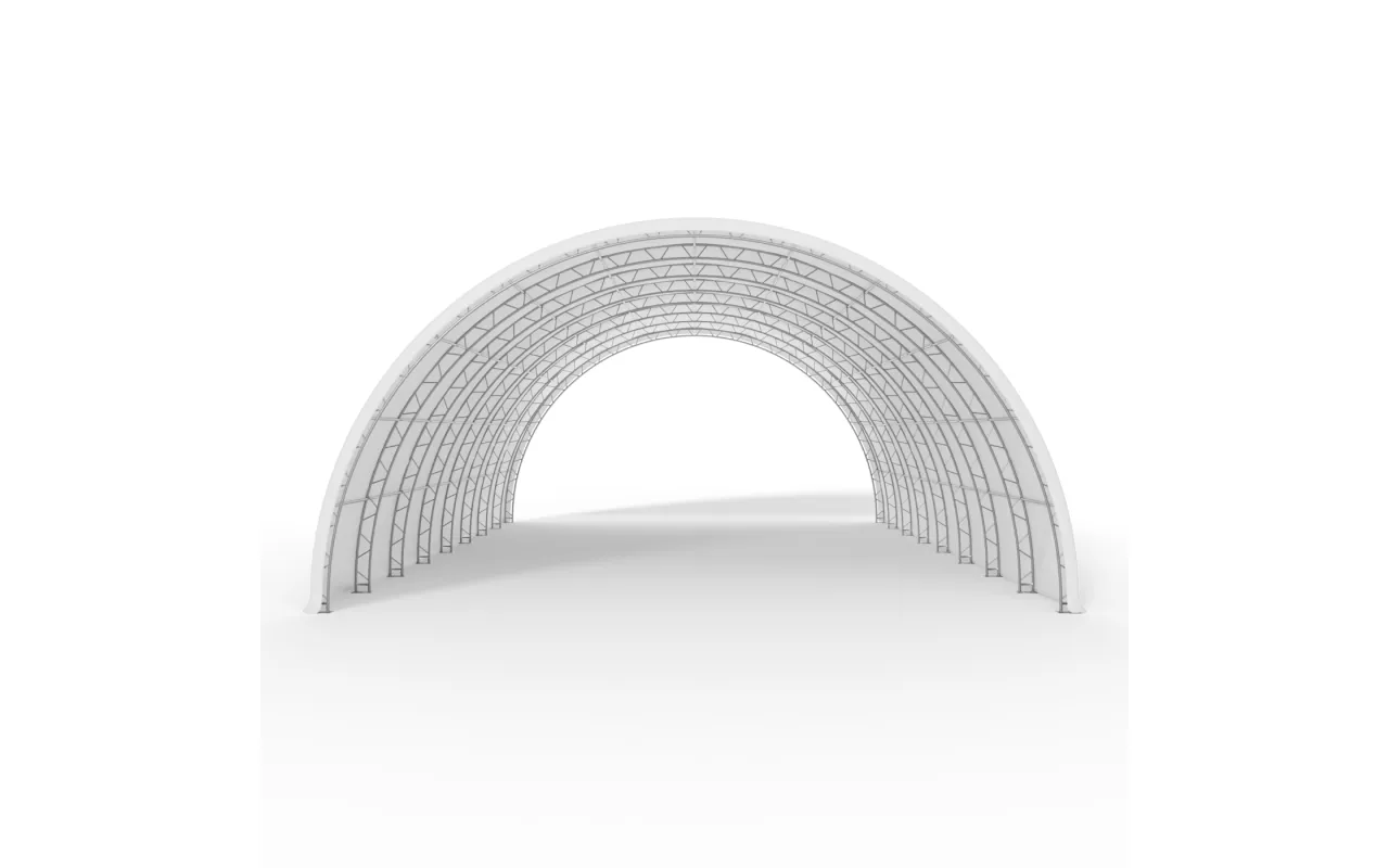 Velká tunelová hala o délce 30,5 m je určena pro farmy i firmy, které potřebují prostorný a odolný skladovací prostor. Díky příhradové konstrukci zůstává stabilní i při vyšším zatížení. Opláštění z PVC 750 g/m² účinně chrání interiér před počasím. Hala může sloužit jako sklad techniky, úrody nebo jako dočasné logistické centrum.