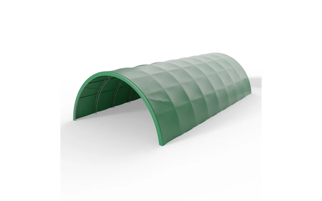 Zesílená oblouková stanová hala 12,2x24 m PVC 900 g/m² v zeleném provedení byla navržena pro zemědělské a chovatelské provozy i pro malé a střední podniky, které potřebují spolehlivý skladovací prostor. Ideálně slouží jako celoroční nebo sezónní úložiště pro balíky sena a slámy, zemědělské stroje, hnojiva či krmiva. Je také skvělým řešením pro skladování úrody v big-bazích, zeleniny, zemědělských plodin a vybavení, které je nutné chránit před deštěm, sněhem či sluncem. Tunelový oblouk umožňuje efektivně využít každý metr prostoru, umožňuje průjezd velkých strojů bez nutnosti otevírání vrat a zajišťuje přirozené proudění vzduchu. Díky otevřené štítové konstrukci a širokým možnostem konfigurace může Zesílená oblouková stanová hala 12,2x24 m PVC 900 g/m² v zeleném provedení plnit mnoho funkcí a snadno se přizpůsobit měnícím se potřebám hospodářství.
