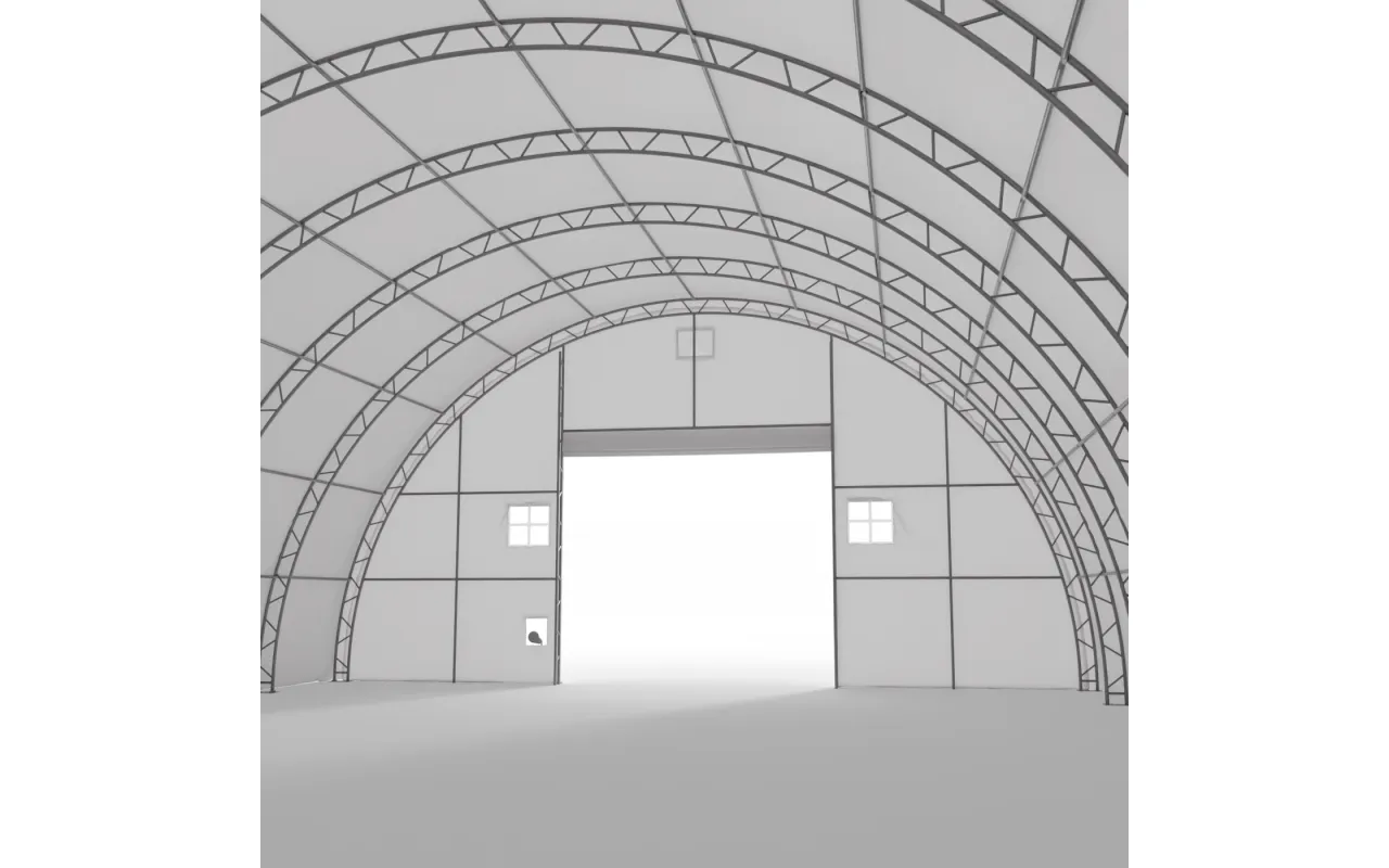 Velká plachtová hala s plochou přes 460 m² je ideální jako sklad pro stroje, sypké materiály nebo paletované zboží. Díky příhradové konstrukci a opláštění z PVC 750 g/m² poskytuje provedení 15,25×30,5 m spolehlivou ochranu proti povětrnosti. Oblouková střecha usnadňuje odvod srážek, přední brána na lano a plná zadní stěna vytvářejí uzavřený a bezpečný prostor. Hala je určena k montáži na základové patky. Chcete ověřit vhodnost pro váš provoz? Zavolejte – doporučíme optimální řešení.