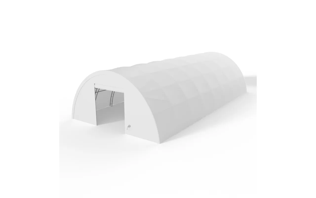 Hala o délce 24 m se zesílenou konstrukcí na dvojité příhradovině poskytuje stabilní a praktický prostor pro každodenní provoz. Opláštění z PVC 750 g/m² chrání interiér před deštěm, větrem i UV zářením. Přední stěna s ručně ovládanou bránou na naviják s klikou usnadňuje obsluhu, zatímco zadní stěna uzavírá celek a vytváří bezpečný sklad. Vhodné pro zemědělství i firmy, které potřebují spolehlivé zázemí pro stroje a materiál.
