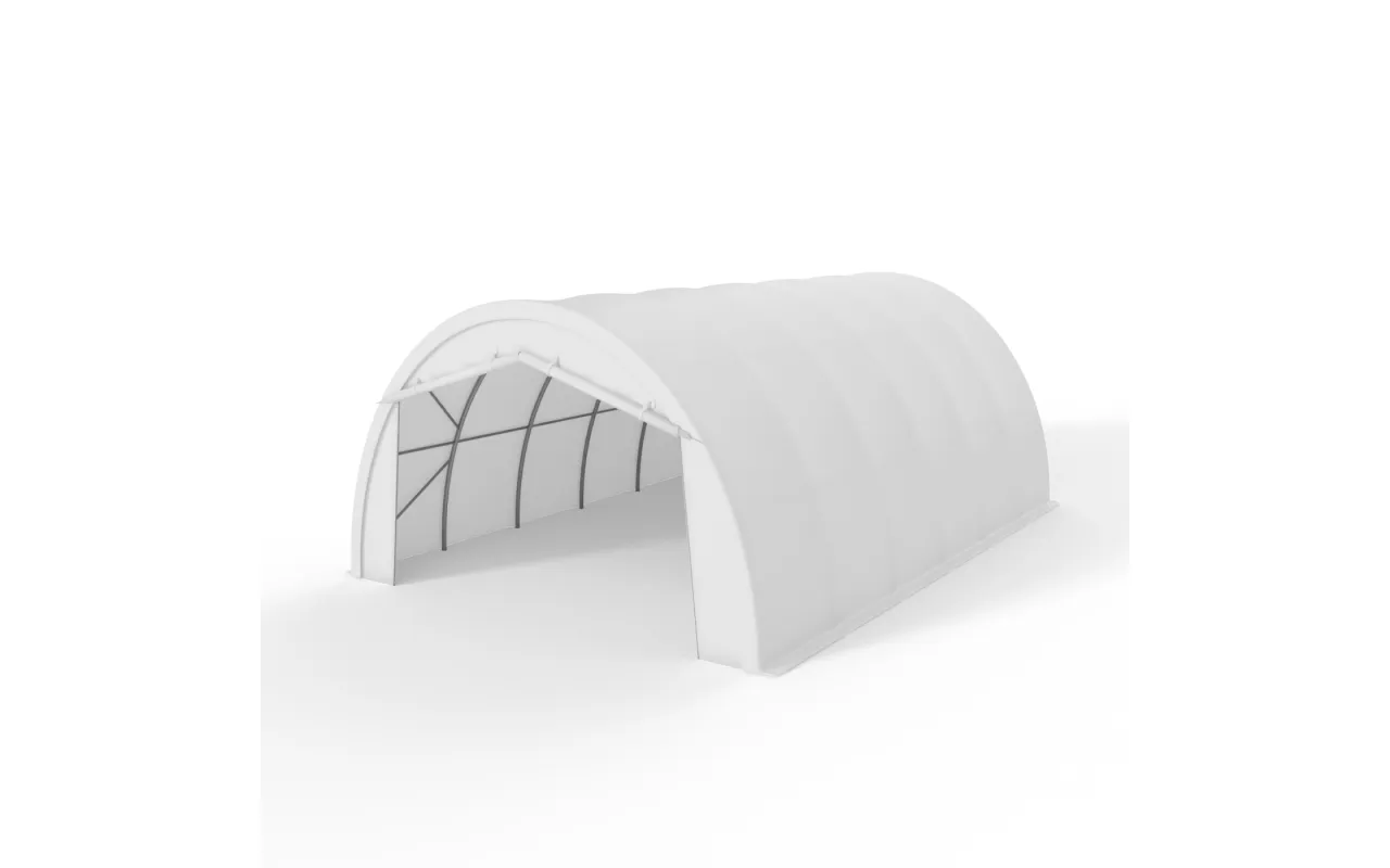 Model 6,1×18,3 m je univerzální skladová hala s plochou přes 110 m² pro ochranu strojů, krmiv, materiálu nebo vybavení. Lehká konstrukce z oválných profilů zajišťuje stabilitu a dlouhou životnost, zatímco PVC plachta 750 g/m² chrání interiér před deštěm, sněhem i UV zářením. Čelní rolovací brána se zipem umožňuje rychlý vjezd a montáž na kolíky nevyžaduje základy. Objednejte přímo přes web nebo se obraťte na našeho poradce.