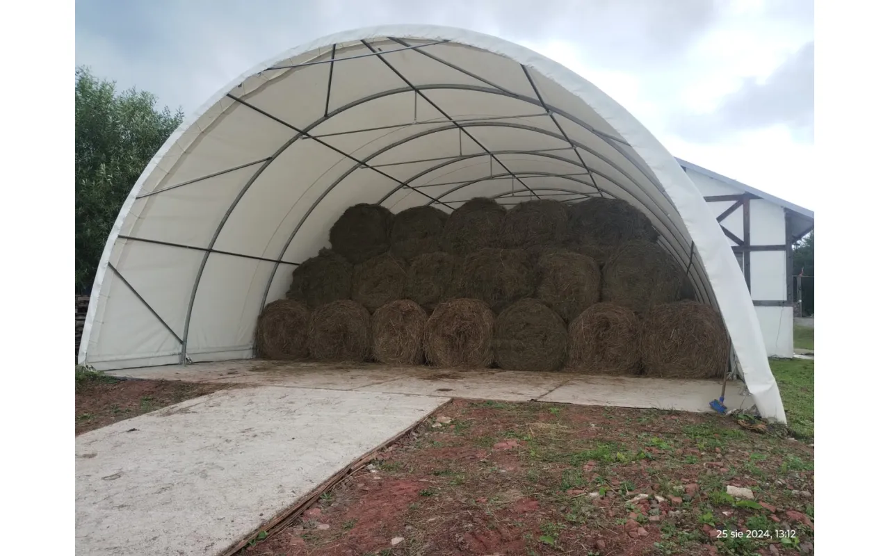 Plachtová hala o rozměru 9,15×12 m je osvědčené řešení pro uživatele, kteří potřebují funkční a odolný sklad. Oválná ocelová konstrukce a kryt z bílá plachta PVC 750 g/m² chrání před větrem, srážkami i sluncem. Součástí je zadní stěna a čelní stěna s bránou ovládanou ručně pomocí lana. Stabilní provedení se hodí pro zemědělství, lesnictví i menší servisní provozy. Kontaktujte nás pro technické detaily a nabídku před objednáním.
