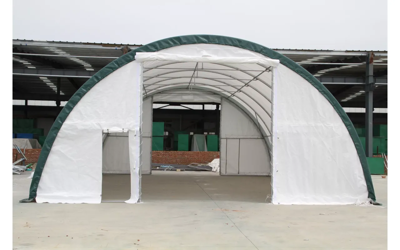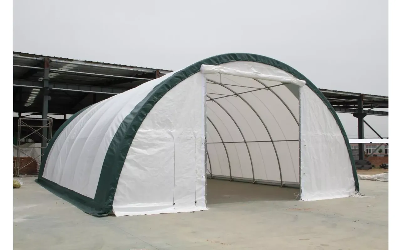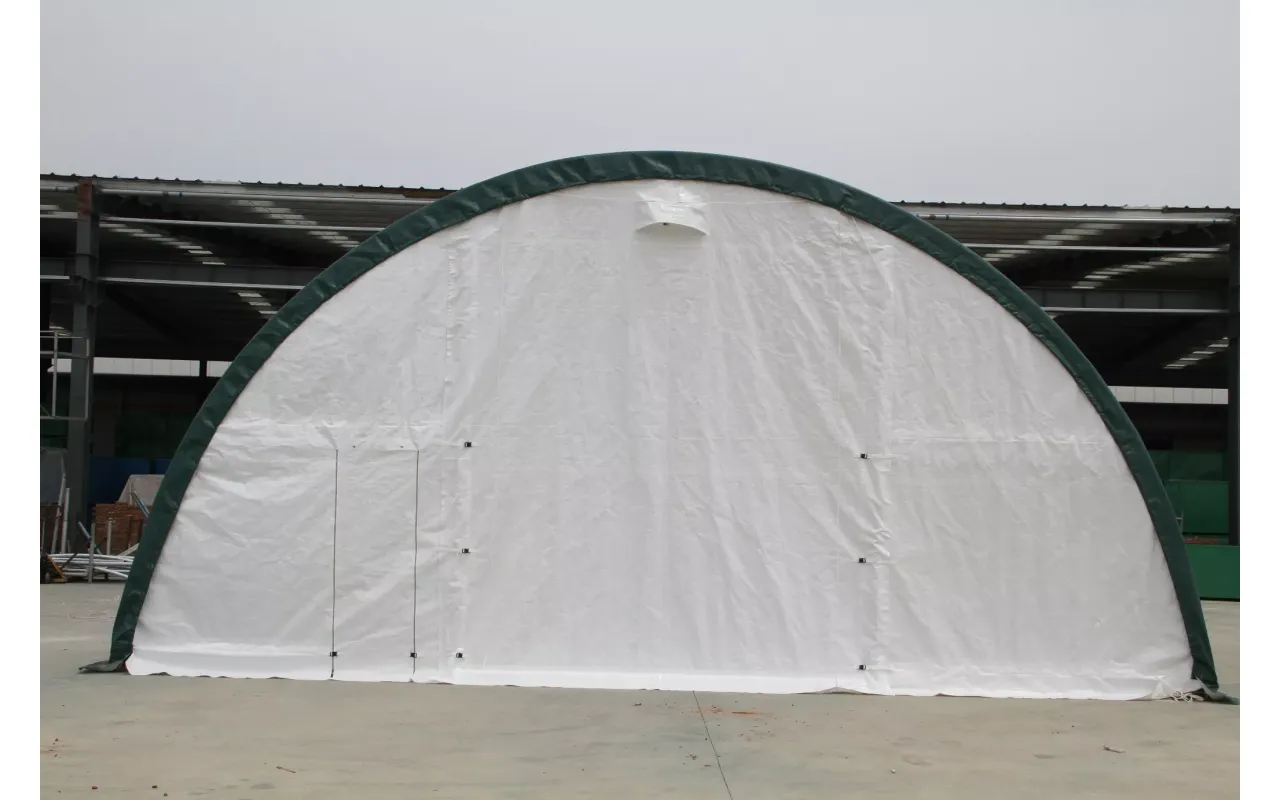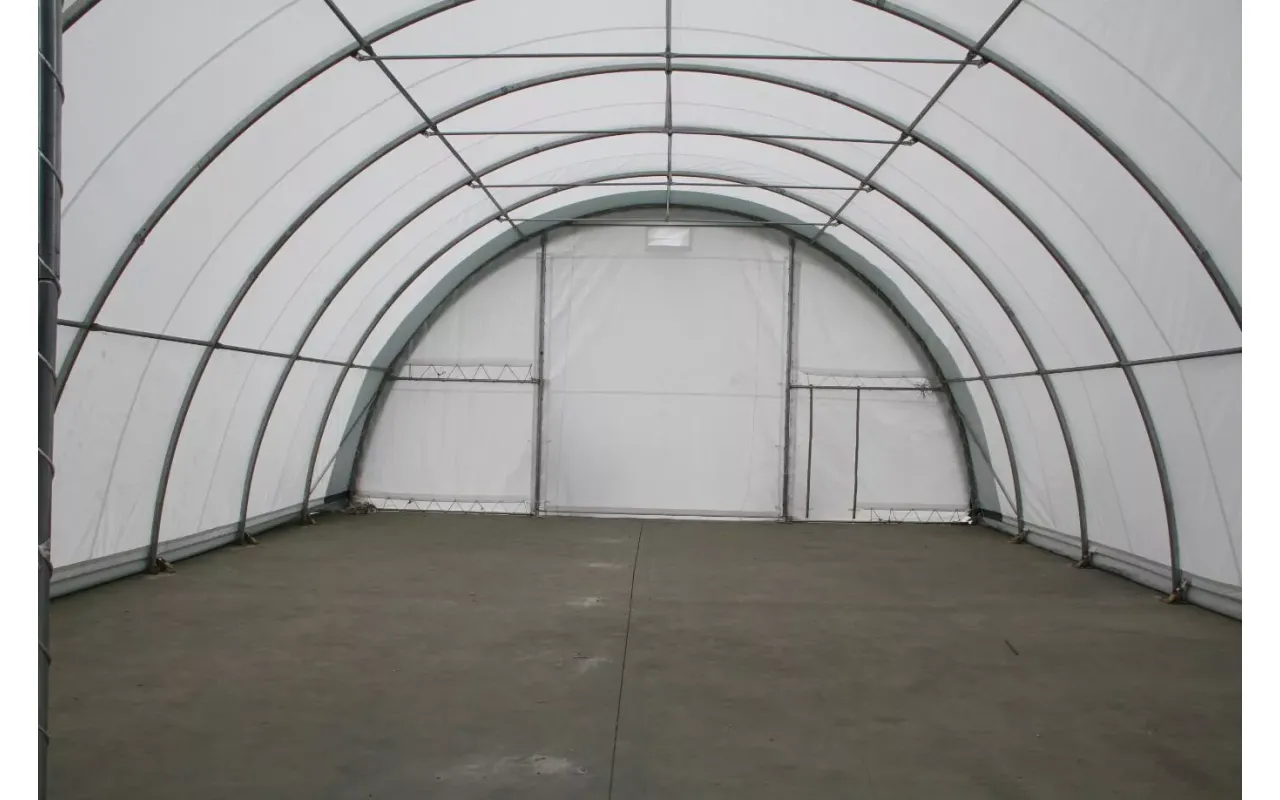 Varianta 9,15×12 m s bílou plachtou PVC 900 g/m² je zesílená oblouková hala pro intenzivní provoz a proměnlivé klima. Vysoká odolnost materiálu proti oděru i UV záření z ní dělá spolehlivé celoroční skladové nebo technické zastřešení. Vrata na lano a plná zadní stěna zajistí bezpečné uzavření prostoru. Chcete znát reálný termín dodání? Kontaktujte nás – dáme vám konkrétní odpověď.