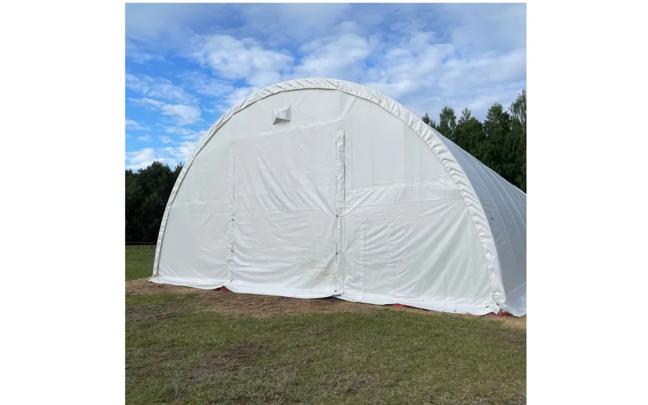 Model 12,2×24 m pomáhá lépe zvládat sezónní špičky – sklad plodin, krmiv i dočasné odstavení techniky. Kryt z bílá plachta PVC o gramáži 750 g/m² chrání před počasím i UV zářením. Konstrukce z oválného ocelového profilu dobře snáší zatížení sněhem. Přední stěna s ručně ovládanými rolovacími vraty na lano a zadní stěna umožní plné uzavření. Doporučená montáž na základové patky. Ozvěte se – vybereme model podle vašich logistických potřeb.