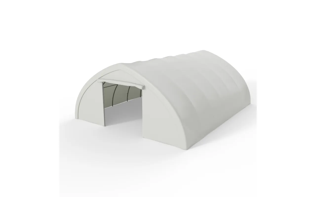 Plachtová hala o rozměru 9,76×12 m je kompaktní řešení pro stroje, sypké materiály i krmiva. Ocelový rám z oválných profilů a kryt z bílá plachta PVC 750 g/m² odolávají proměnlivému počasí. Součástí je zadní stěna a čelo s ručně ovládanými rolovacími vraty na lano pro pohodlný vjezd. Oblouková geometrie usnadňuje skluz sněhu a odtok vody, čímž omezuje zatížení konstrukce. Objednejte online nebo se poraďte s naším technikem.