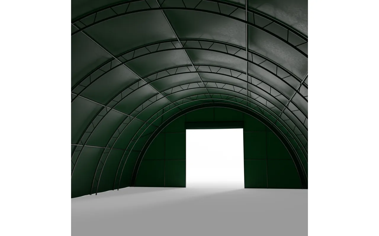Oboustranná stěna pro zesílenou obloukovou halu 12 m PVC 900 g/m² v zeleném provedení je konstrukční prvek, který umožňuje účinně uzavřít obloukovou halu z jedné nebo obou stran – v závislosti na účelu objektu a potřebách uživatele. Čelní stěny jsou vybaveny ručně ovládanou rolovací bránou (s lanovým nebo kličkovým mechanismem), která umožňuje pohodlný vjezd strojů nebo přístup pro pěší. Zadní stěny, jako plné přepážky bez brány, chrání zadní část haly před nepříznivými povětrnostními podmínkami. [nazwa produktu] zajišťuje ochranu interiéru před větrem, srážkami a prachem a zároveň zvyšuje užitnou hodnotu konstrukce tím, že zlepšuje organizaci skladového prostoru a usnadňuje každodenní logistiku.