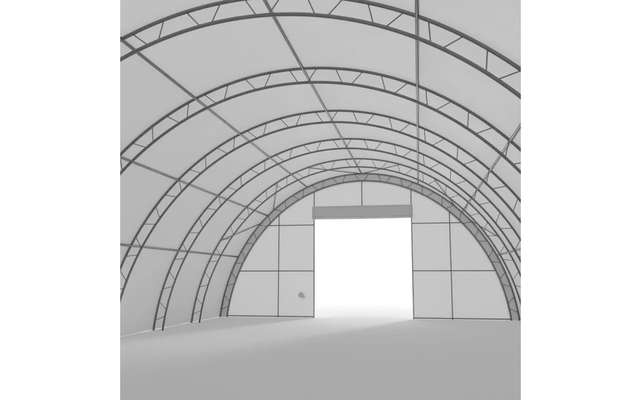 Oboustranná stěna s rolovacími vraty pro tunelové haly o šířce 12 m. Tvoří ji odolný ocelový rám a opláštění z plachty PVC 750 g/m². Zajišťuje pohodlný vjezd do haly a účinnou ochranu proti větru, srážkám i nečistotám. Montáž je rychlá a bez základů. Pošlete nám požadovaný průjezd a připravíme nabídku.