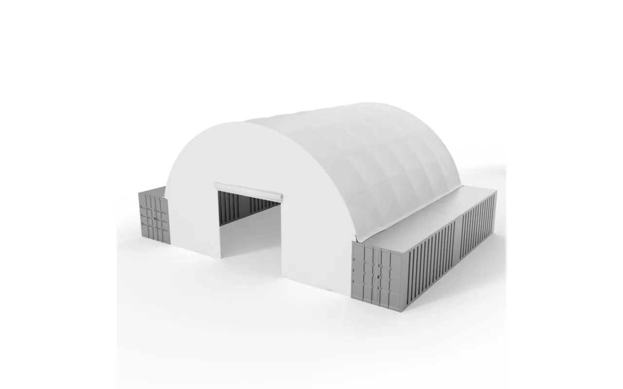 Přední stěna pro kontejnerové zastřešení 9,15 m PVC 900 g/m² je praktickým a funkčním doplňkem každého kontejnerového zastřešení Gazelt. Podle potřeby může sloužit jako zadní stěna – zajišťující trvalé uzavření tunelu zezadu, nebo jako čelní stěna s rolovací bránou – umožňující snadný přístup do haly. Toto řešení se doporučuje všude tam, kde je třeba chránit uskladněné zboží nebo stroje před povětrnostními vlivy a neoprávněným přístupem. Přední stěna pro kontejnerové zastřešení 9,15 m PVC 900 g/m² účinně chrání vnitřní prostor před větrem, sněhem, deštěm i prachem a zároveň zvyšuje funkčnost celé konstrukce kontejnerového zastřešení.