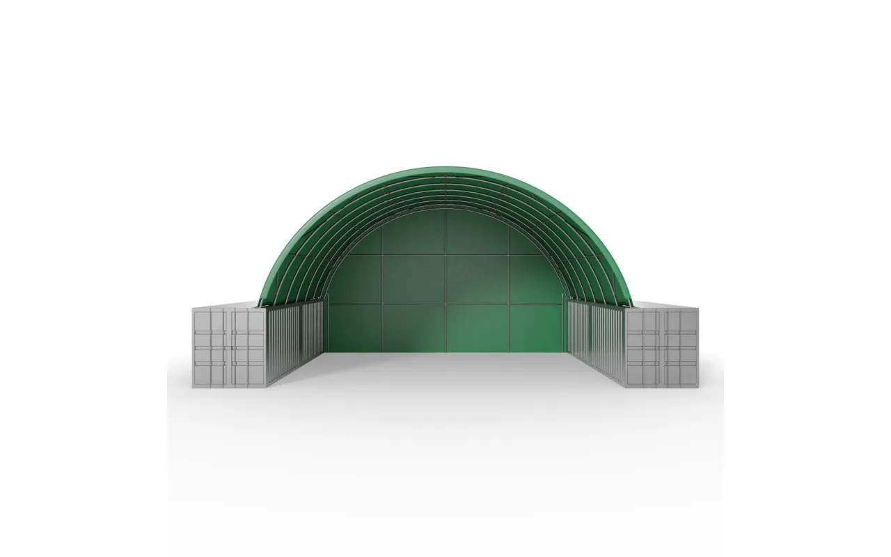 Zadní stěna pro kontejnerové zastřešení v zeleném provedení 6 m PVC 900 g/m² je dodávána jako kompletní řešení – s připraveným ocelovým rámem a přizpůsobeným plášťovým materiálem, navrženým pro konkrétní šířku tunelu (např. 10 m, 12 m). Montáž je možná jak na čelní, tak i na zadní straně konstrukce, podle požadované funkce a organizace práce na místě. Rolovací brána v čelních stěnách umožňuje bezpečný vjezd strojů a přepravu materiálů, zatímco zadní stěny tvoří pevnou přepážku uzavírající skladový prostor. Bez ohledu na variantu zajišťuje Zadní stěna pro kontejnerové zastřešení v zeleném provedení 6 m PVC 900 g/m² vysoký komfort používání a účinnou ochranu, přičemž její modulární konstrukce umožňuje snadné přizpůsobení měnícím se potřebám podnikání v logistice, stavebnictví, skladování nebo zemědělství.
