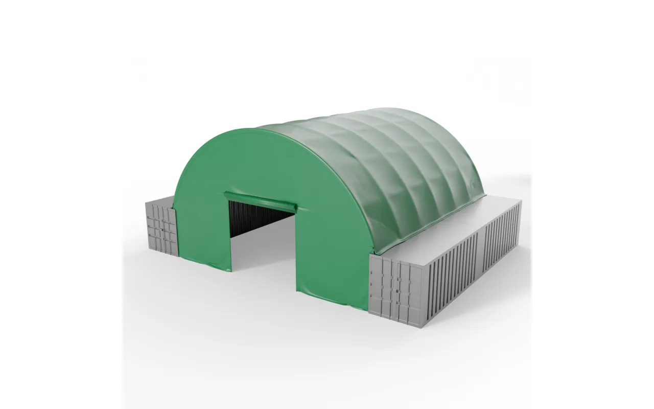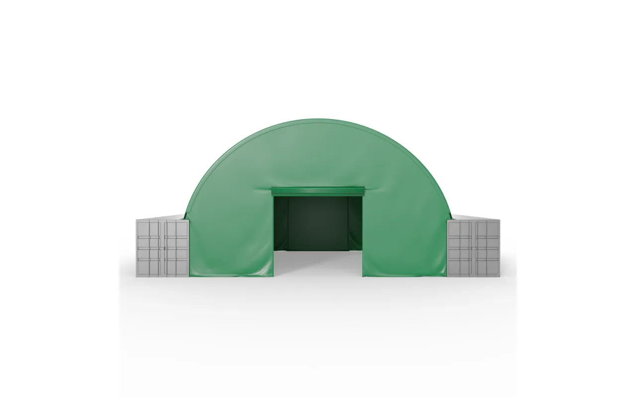 Přední stěna pro kontejnerové zastřešení v zeleném provedení 6 m PVC 900 g/m² je dodávána jako kompletní řešení – s připraveným ocelovým rámem a přizpůsobeným plášťovým materiálem, navrženým pro konkrétní šířku tunelu (např. 10 m, 12 m). Montáž je možná jak na čelní, tak i na zadní straně konstrukce, podle požadované funkce a organizace práce na místě. Rolovací brána v čelních stěnách umožňuje bezpečný vjezd strojů a přepravu materiálů, zatímco zadní stěny tvoří pevnou přepážku uzavírající skladový prostor. Bez ohledu na variantu zajišťuje Přední stěna pro kontejnerové zastřešení v zeleném provedení 6 m PVC 900 g/m² vysoký komfort používání a účinnou ochranu, přičemž její modulární konstrukce umožňuje snadné přizpůsobení měnícím se potřebám podnikání v logistice, stavebnictví, skladování nebo zemědělství.