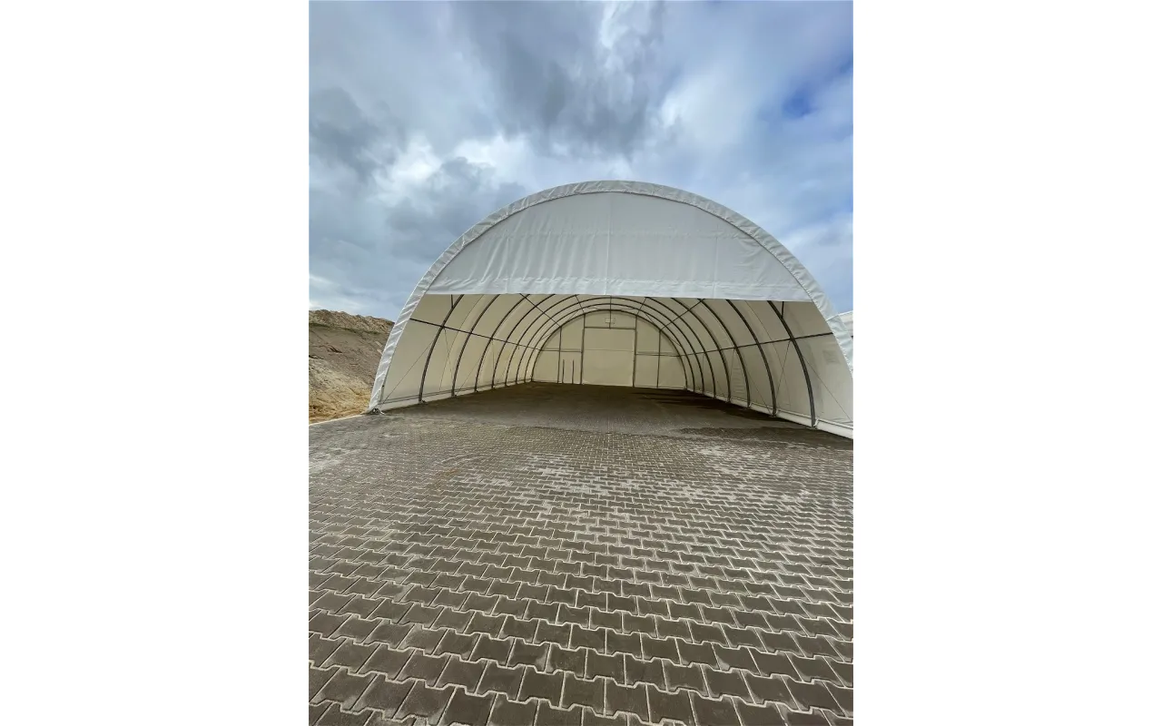 Štítový kryt s rámem pro obloukovou halu 12 m PVC 750 g/m² je praktické řešení pro částečné zakrytí tunelové haly z přední nebo zadní strany. Namísto plné stěny chrání horní část štítu a zajišťuje ochranu vnitřku haly před větrem, srážkami a prachem. Toto řešení je ideální tam, kde potřebujete ochránit skladované zboží, ale zároveň chcete zachovat volnou cirkulaci vzduchu nebo rychlý přístup dovnitř. Štítový kryt s rámem pro obloukovou halu 12 m PVC 750 g/m² zvyšuje funkčnost konstrukce, aniž by omezoval její flexibilitu – zejména při sezónním skladování plodin, strojů nebo stavebních materiálů.