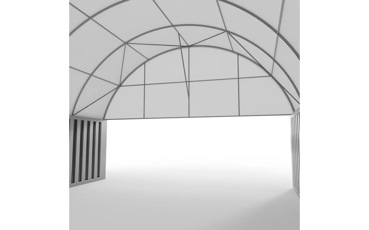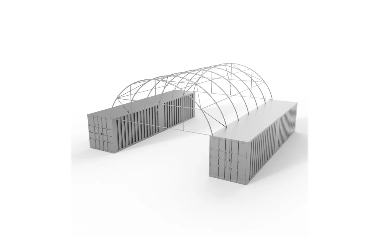 Model o šířce 8 m s krytím PVC 750 g/m² je lehká a funkční štítový kryt montovaná na ocelový rám mezi kontejnery. Účinně chrání prostor z čela nebo zezadu a omezuje vliv větru i srážek na skladované zboží. Konstrukce je navržena pro kontejnerový systém Gazelt, což usnadňuje montáž a zaručuje kompatibilitu s obloukovým zastřešením. Osłona nevytváří zcela uzavřený prostor, ale výrazně zlepšuje skladovací podmínky v tunelu – vyžádejte si nabídku.