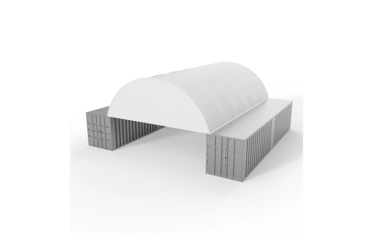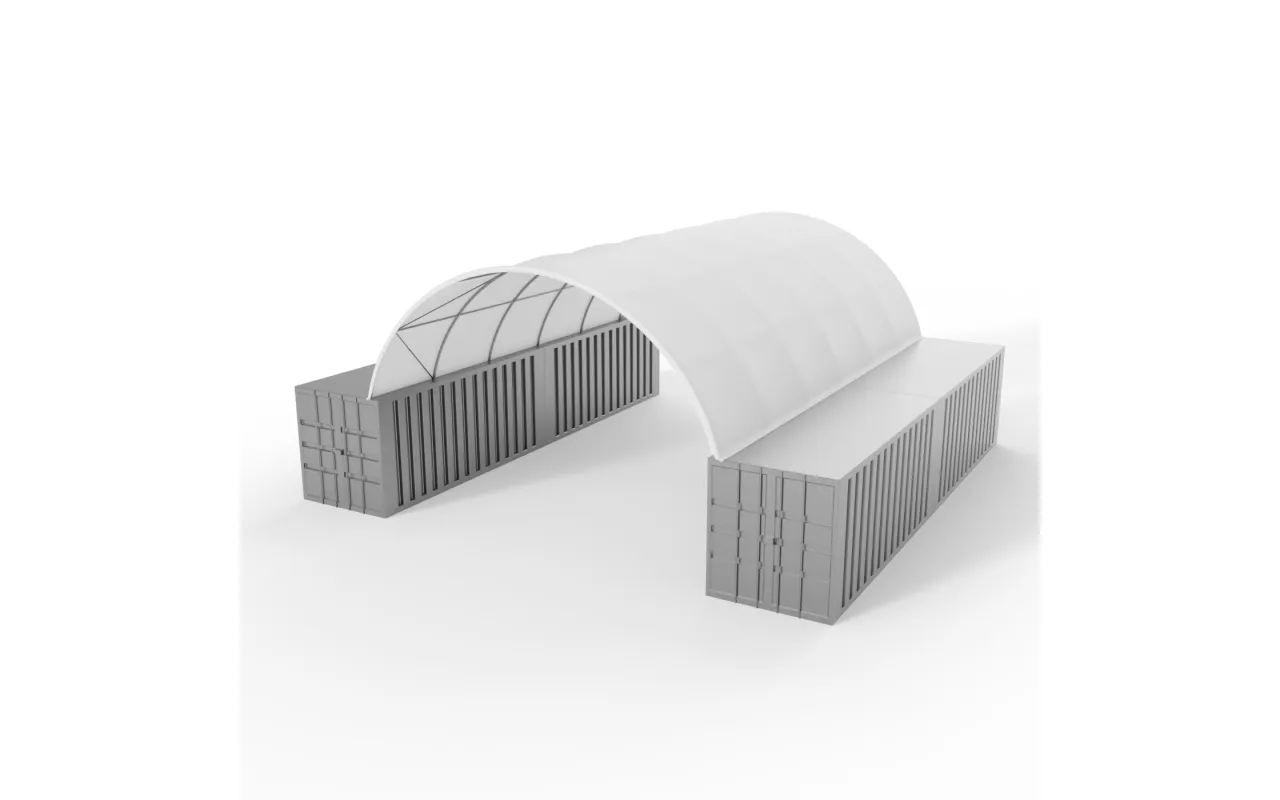 Varianta z PVC materiálu 900 g/m² nabízí vyšší odolnost proti mechanickému poškození a intenzivnímu provozu. Kryt o šířce 8 m se montuje na štíty obloukového zastřešení na kontejnerech. Díky ocelovému rámu drží plachta správné napnutí a stabilitu a vytváří účinnou bariéru proti větru, dešti i sněhu. Ideální doplněk skladové konstrukce pro firmy i zemědělce, kteří chtějí lépe chránit uložené materiály.
